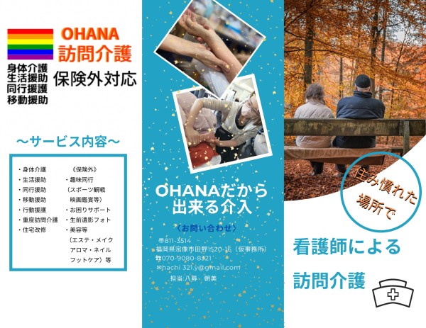 ヘルパーステーションOHANAの公式ホームページです。当事業所では、宗像市、遠賀郡、福津市にて訪問介護サービスを提供しております。また福岡県全域にて訪問美容サービス(メイク・ネイル・エステ・アロマ)も提供しております。ご利用をお考えの方はお気軽にご連絡ください。